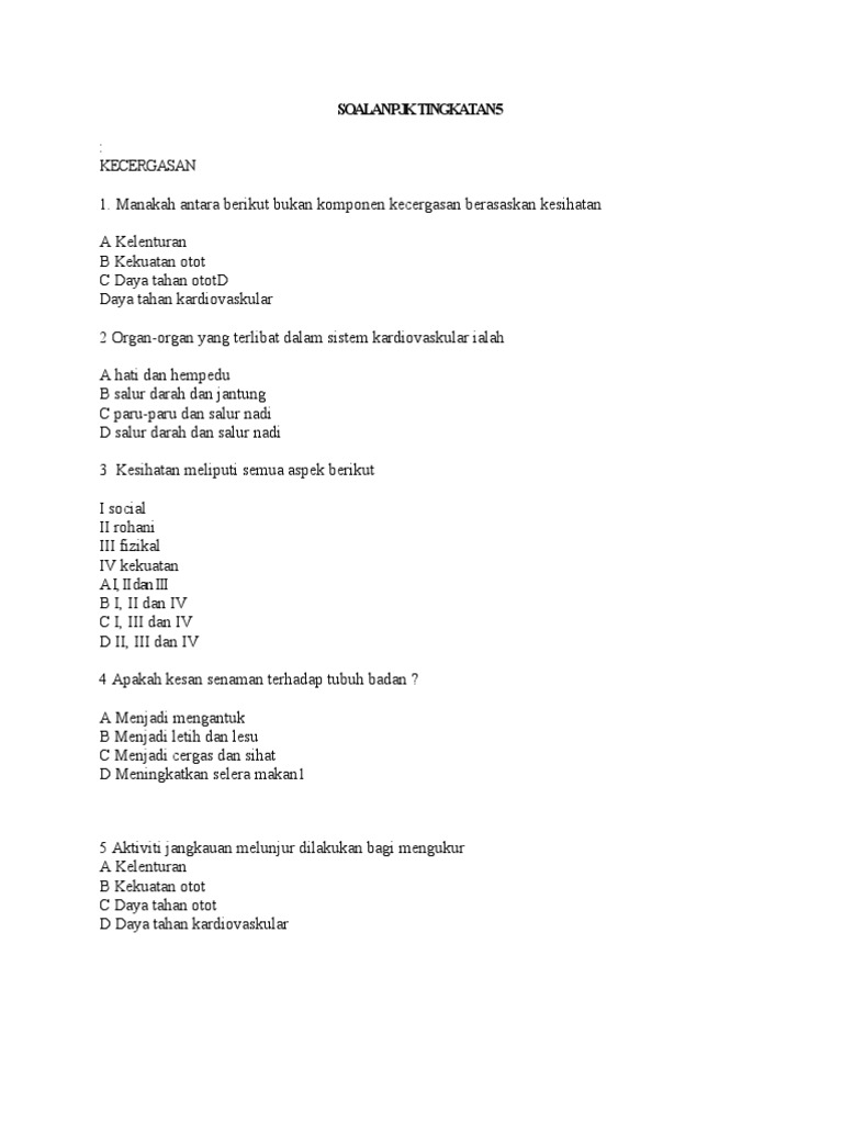 Soalan PJK Tingkatan 2 Ujian 1 2018 KSSM from imgv2-2-f.scribdassets.com Rpt pjk tingkatan 3 rancangan tahunan pendidikan jasmani dan kesihatan tingkatan 3 *objektif *minggu *tunjang pembelajaran *kaedah/ aktiviti ( a=aras objektif) *rujuka *pelajara *unit pembelajaran *kbkk *hasil n teks n *spesifikasi. Rpt 2015 kimia tingkatan 4 by cikgu hailmi 41045 views. Ujian mac pjk tingkatan 1. Sm sains pokok sena rancangan pelajaran tahunan matematik tambahan tingkatan 4 2017 a1. Rpt pjpk tingkatan 4 by cyril_riseng. Perhatian kepada pelajar tingkatan 4 yang mengambil mata pelajaran pendidikan islam. Tingkatan 4, or form 4, is the start of higher secondary education. Akhir kata sebelum berpisah, kami semua berharap agar anda terima kasih kerana beri sokongan ke website kami ini.